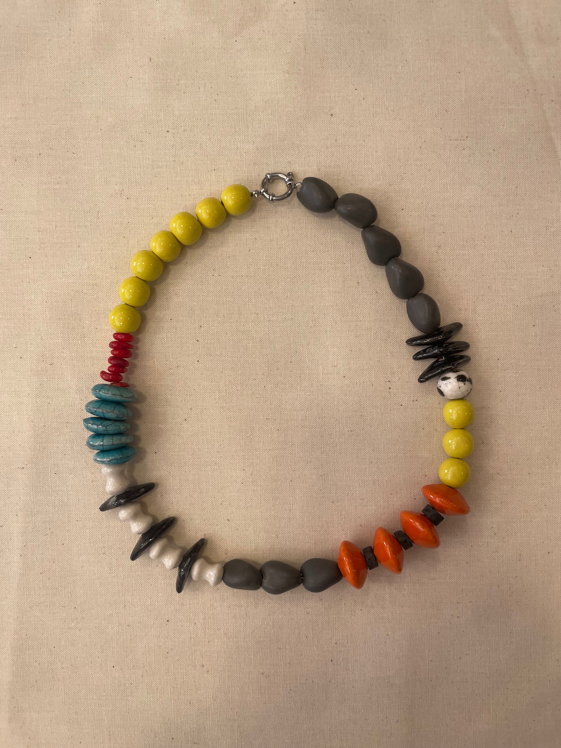 Handcrafted ceramic and stone necklace, stainless steel clasp.