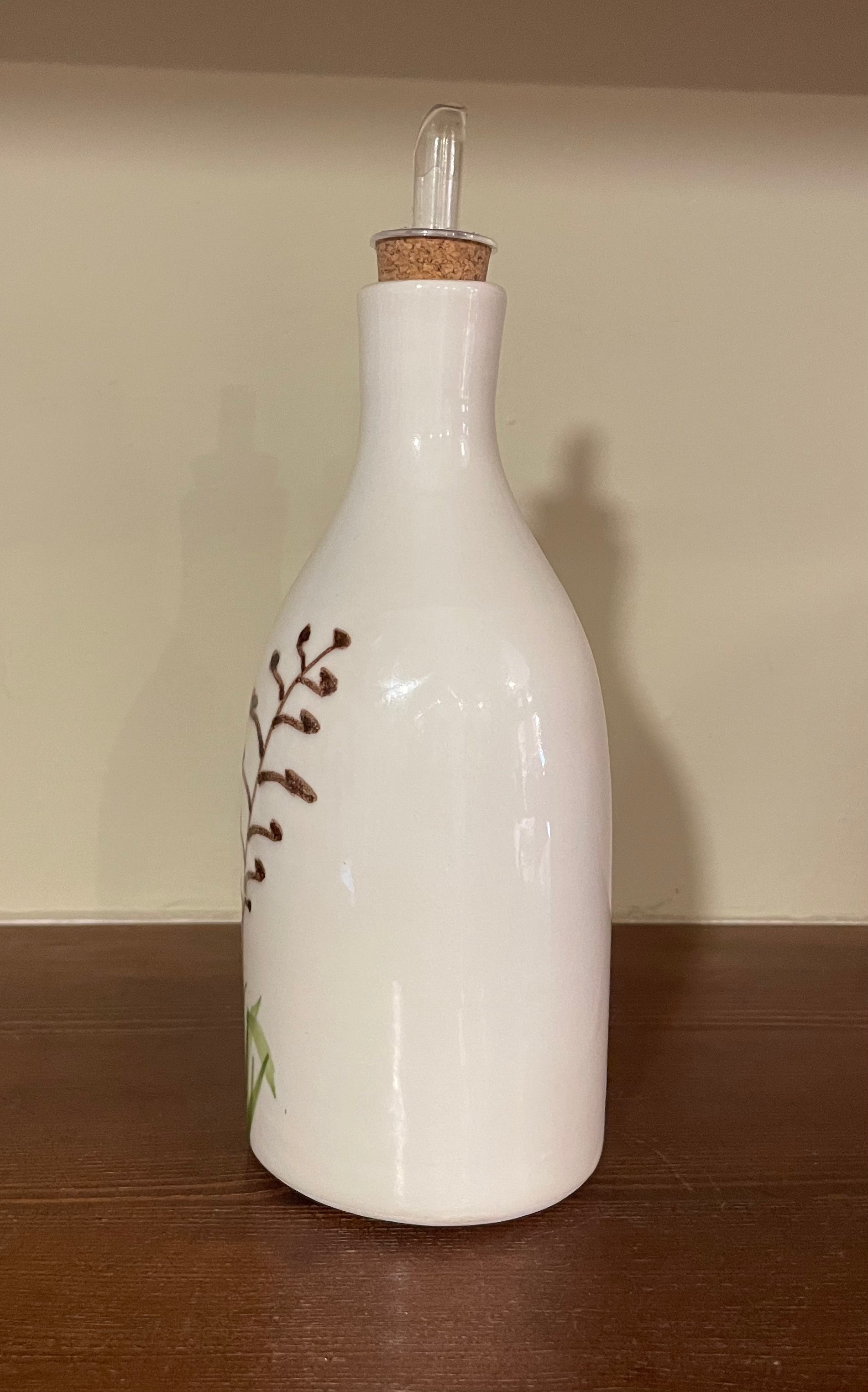Handmade ceramic, oil bottle hand-painted. Each piece is unique and different.
